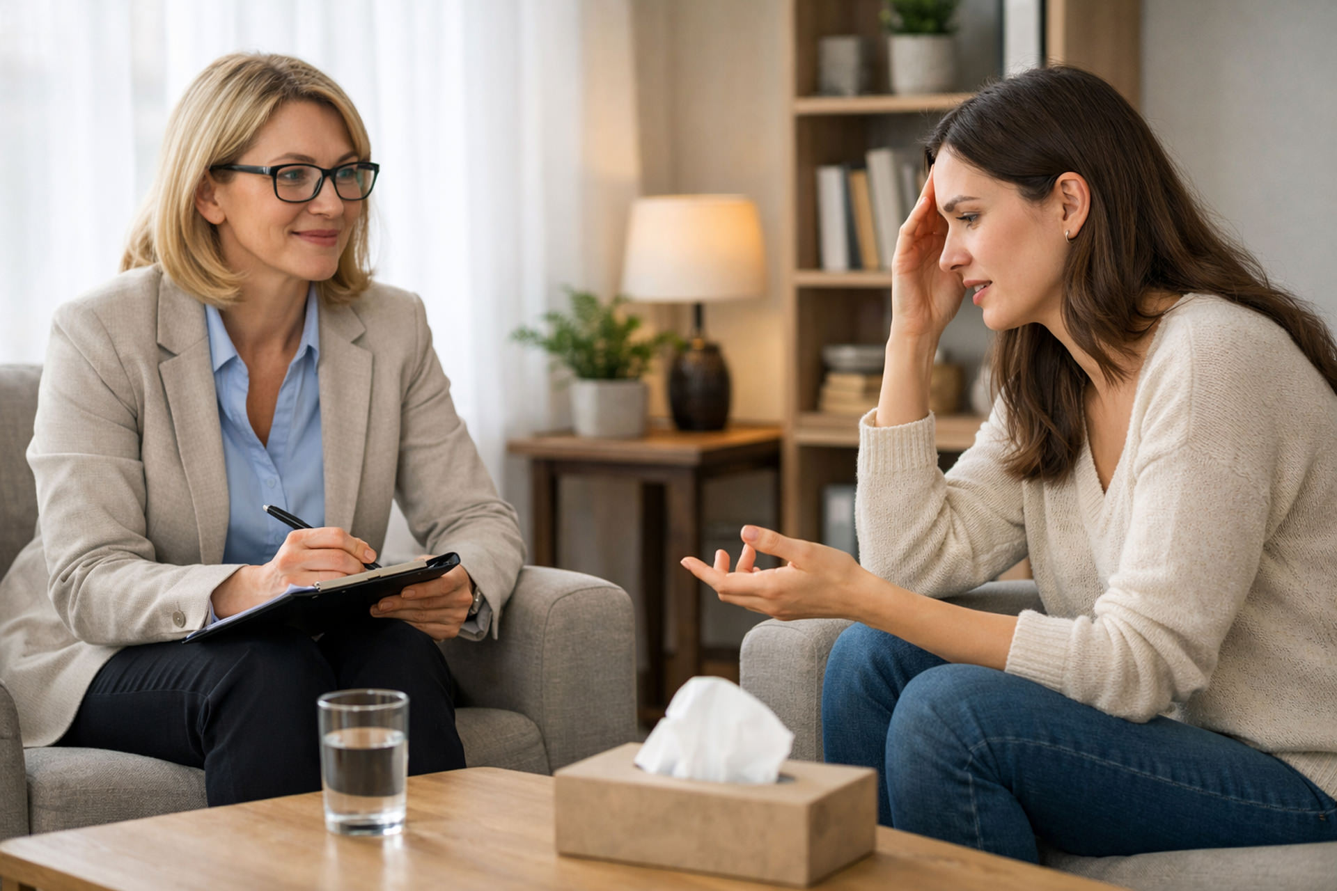Im psychotherapeutischen Gespräch runde ich die Sitzung ab.
